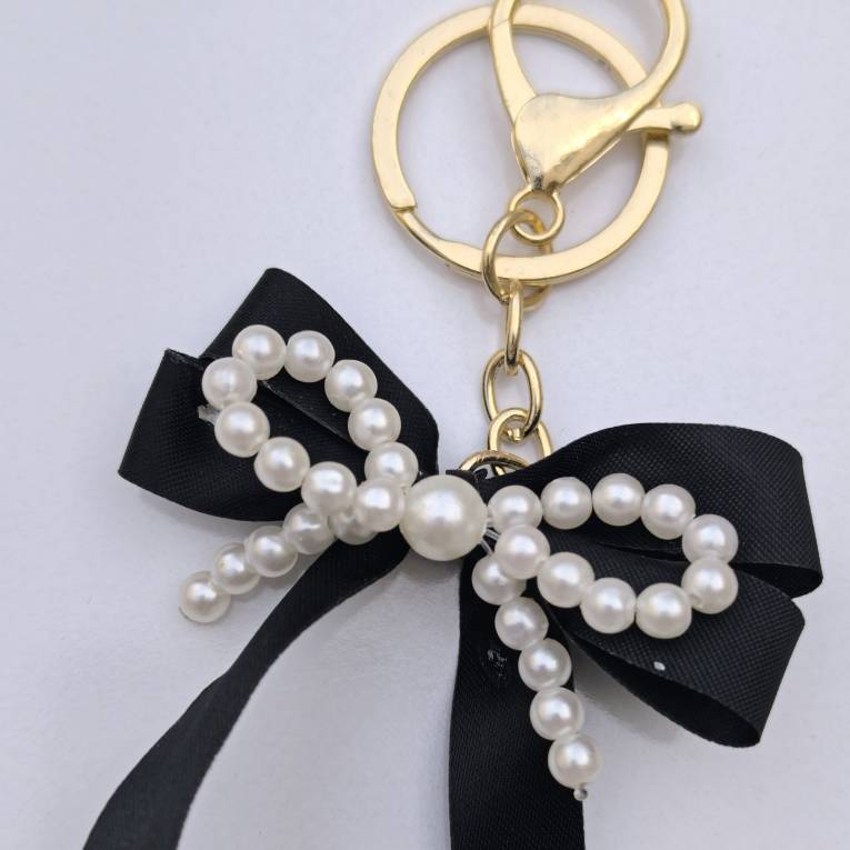 آویز کیف و جاکلیدی پاپیونی مرواریدی مشکی